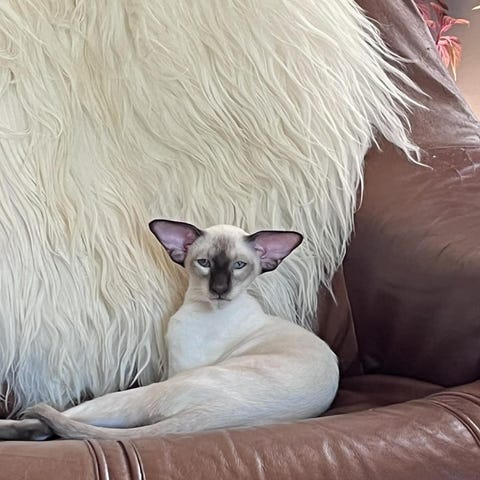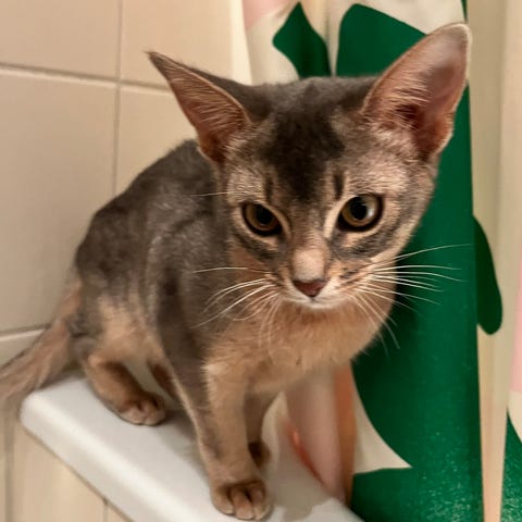 Svært godt sosialisert, har vokst opp sammen med andre katter, hunder i ulike størrelser og en stor familie. Hun er innekatt.