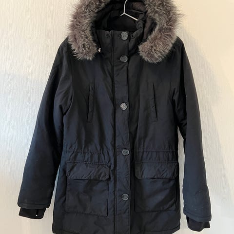 H&M vinterjakke for kvinner i størrelse 42. Jakken er grå og laget av polyester. Egnet som ytterplagg i kaldt vær.