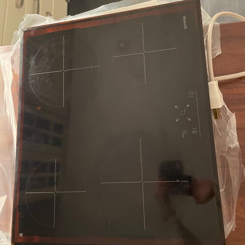 Gorenje induksjonstopp med fire kokeplater og berøringskontroller. Overflaten er i svart glass, designet for effektiv og rask oppvarming ved bruk av induksjonsteknologi.