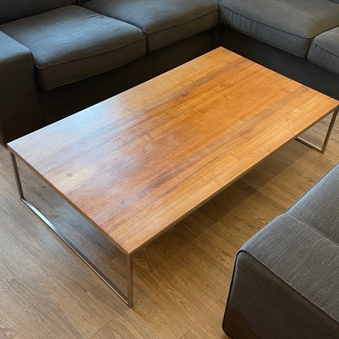 Bordet har avrundede kanter, kraftig bordplate og en base med bueformet støtte – en konstruksjon som var ganske vanlig