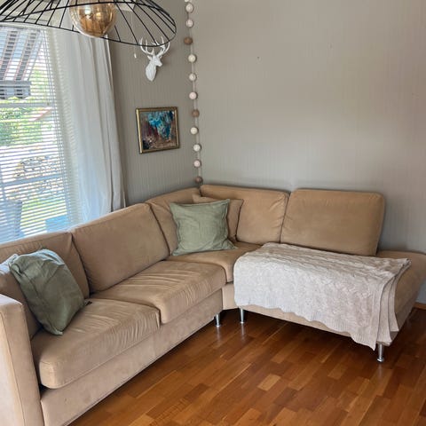 Spisestue sofa, original ben følger med var originalt en vanlig sofa, men vi satte på Bombay bord ben og har brukt den som spisestue sofa. Veldig deilig å ligge å slappe av i 😃