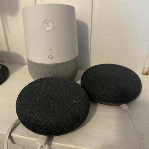 Pent brukt Google nest hub gen 2 i kull farge på stoffet.