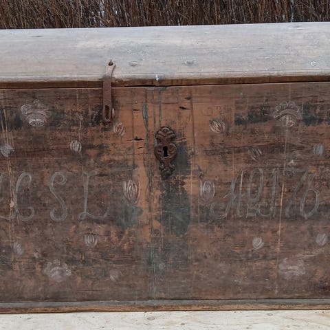 Tre kiste, trenger en vask og litt olje. Fin størrelse til stuebord. Usikker på alder