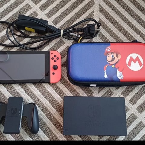 Nintendo Switch spillkonsoll med mye tilbehør og spill