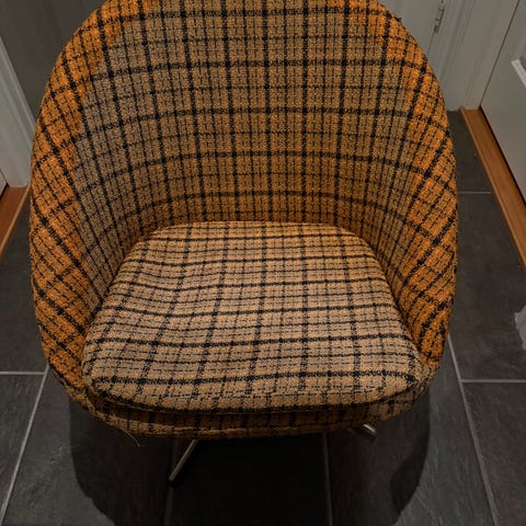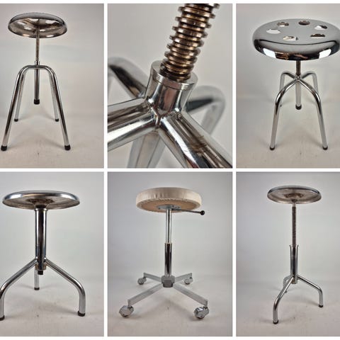 Arbeidsstol ca 1960. Brukes som krakk (siden den ervuten ryggdel). Setet i god stand, skrufestet for høyderegulering funger fint. Solid, står støtt.