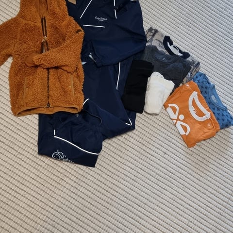 - Vindjakke stripete str. 104 (men passer lenge og kan startes å bruke tidligere)