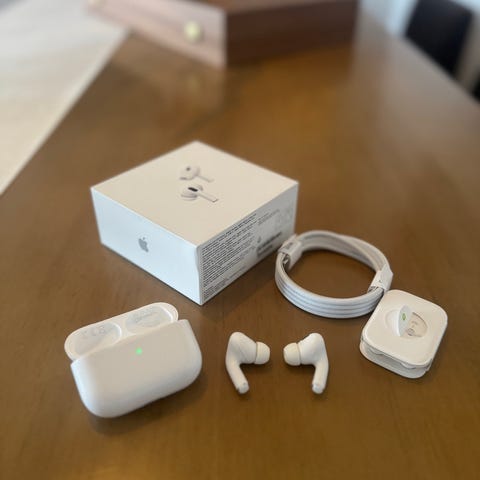 Selger Apple AirPods Pro (2. generasjon) med Lightning lading rimelig, da høyre AirPod har periodevise tilkoblingsproblemer grunnet en liten sprekk i plasten. Problemet merkes hovedsakelig under telefonsamtaler, men løses som regel ved å ta den høyre AirPod-en ut og inn igjen. Brukte plugger i XS og S medfølger