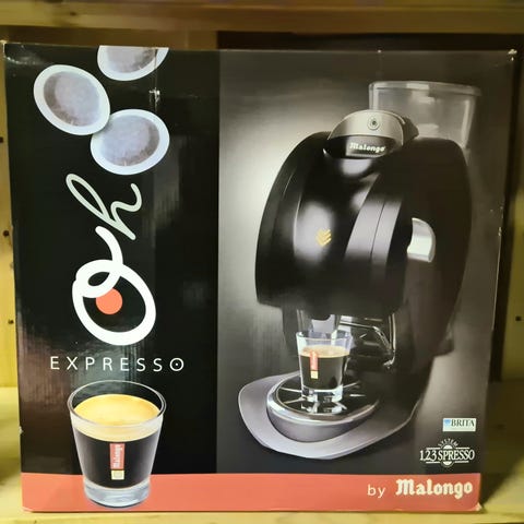 Malongo 1,2,3 Spresso, Malongo EXP310, Zinzino kaffemaskin, espresso maskin, pod kaffemaskin, kaffemaskin pods, Malongo coffee machine, Zinzino coffee machine, espresso maker, coffee pod system, kjøkkenapparat, kaffeutstyr, brukt kaffemaskin, 16 bar espresso, Oslo salg