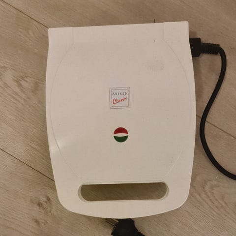 Cloer vaffeljern med hjerteformede vaffelmønstre. Egnet for tilberedning av vafler med flere små hjerter. Hvit farge og kompakt design.