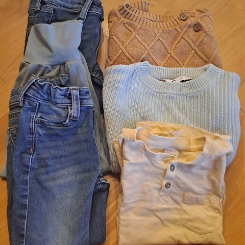 GAP, Lindex og H&M barneklær i størrelse 98, flerfarget, designet for unisex bruk. Inkluderer ulike plagg med forskjellige farger og mønstre, egnet for barn.