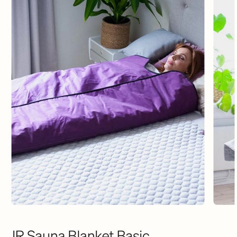IR Sauna Blanket Basic er en infrarød sauna dyne som kan brukes til avslapning og velvære. Den har en lilla farge og er designet for å gi infrarød varme til kroppen.