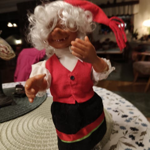 Komplett nissedrakt (Nissedrakt Deluxe) inkluderer en rød nissekåpe med hvitt fluff samt et par matchende bukser med elastikk i midjen med lommer. Det følger også med et solid svart stoffbelte med metallspenne, et par hvite hansker samt svarte skoovertrekk i lærimitasjon. Til slutt får du også med den klassiske nisseluen samt nisseskjegg.