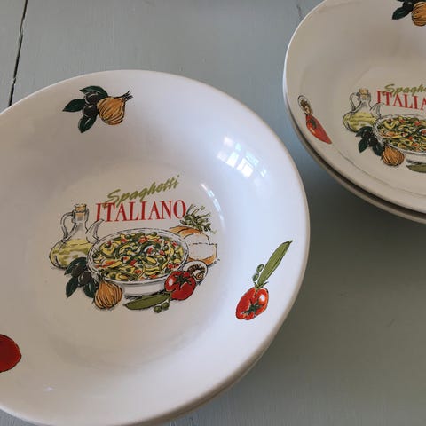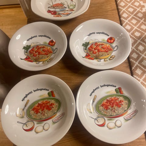Sjarmerende vintage skål med Spaghettata-motiv. Produsert i Italia. Perfekt til pasta, spaghetti, salat eller servering. Masse retro sjarm. Se bilder for mål. 🍝