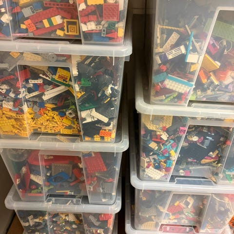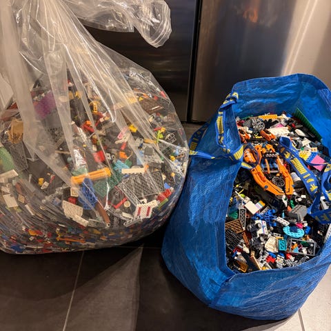 2 sekker med 22 kg blandet lego, legoen er fra ca 1980 til 2010