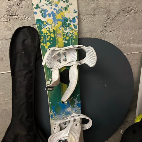 Komplett snowboard med heile og fungerende orginal bindinger. Klart til bruk. Selges for mindre enn det koster å leige for ein dag i alpinsenter.