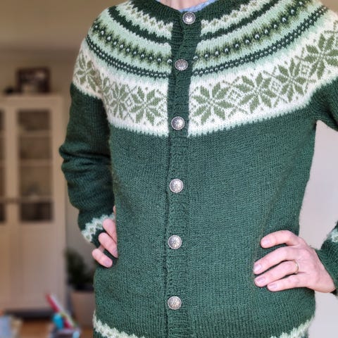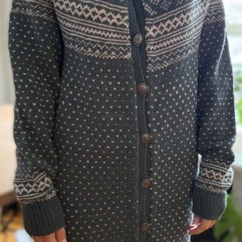 Nystrikket og ubrukt Nancy cardigan strikket i Sandnes alpakka str M. Se bilder for mål.