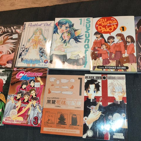 Samling av diverse manga og anime bøker og figurer. Rezero og noen andre er for 100krnper stykk, resten 70 kr per , gjerne send melding angående de du vil ha så ordner vi pris