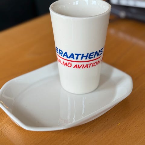 Selger 2 stk. Kaffekopper fra det tidligere flyselskapet Braathens. Koppene er datert 2001. Selges samlet.