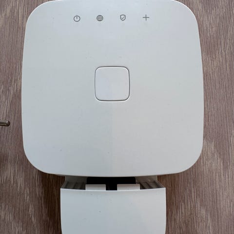 Frient KEZR2-112 trådløs alarmsentral med hvit farge. Enhet for sikkerhetssystemer som støtter trådløs kommunikasjon. Passer til bruk i bolig eller næringsbygg for overvåking og alarmfunksjoner.