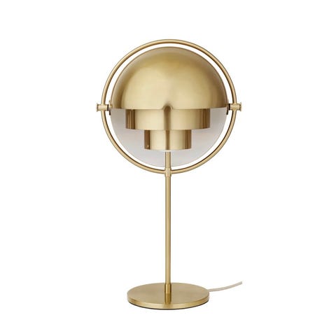 Gubi Greta Grossman bordlampe i fargen antrasit. Lampen har en fleksibel arm og en rund base med på/av-bryter. Designet av Greta Grossman, egnet for bruk som skrivebordslampe eller leselampe.