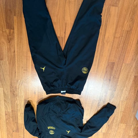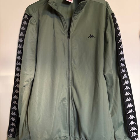 Kappa treningsdress i størrelse M for menn. Dressen er hvit med svart logo og detaljer, laget for sportstype. Polyester 100%. Frakt i tillegg