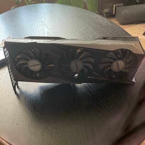 Selger et NVIDIA GeForce RTX 3060 grafikkort med 12 GB VRAM. Kortet gir god ytelse i moderne spill og annet kreativt arbeid.