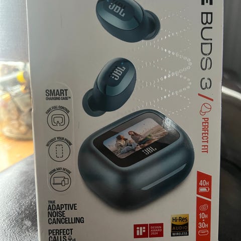 JLab trådløse hodetelefoner med ørekroker i svart farge. Hodetelefonene leveres med et etui som også fungerer som lader. Designet for sikker passform under fysisk aktivitet.