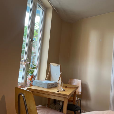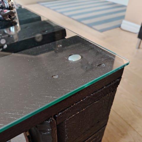 En enkel bordplate i god stand. Den er ganske tykk, men ikke tung. Er usikker på hva man kaller materialet - dessverre!
