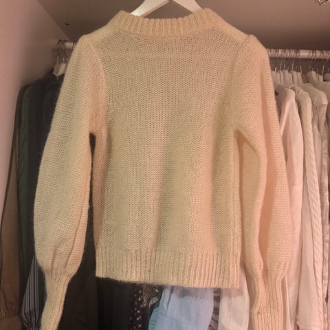 Strikkegenser/ullgenser fra Second female. Modellen heter Andrea Knit V-neck, størrelse XS/34.