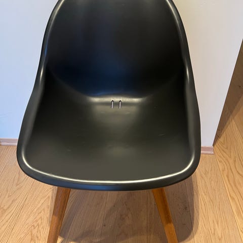 Den er noen synlige bruksmerker som jo kommer fort på slike stoler i plastikk.