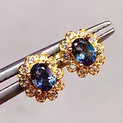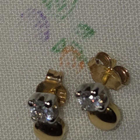 Nye, fine gulløredobber (585) med perle og sten. Helt nye, ikke brukt. Øredobbene kommer ikke til sin fulle rett på bildet.