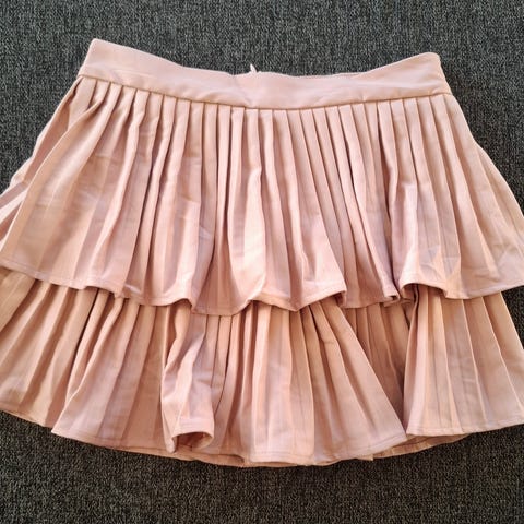 Nydelig brun-metallisk omslagsskjørt med strikk i livet.