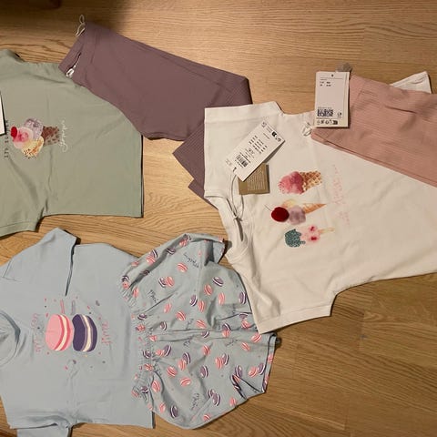 Selger helt nye regnklær, to sett i ulike størrelser. Selges da vi rett og slett glemte de og ble hengende med lappen på.