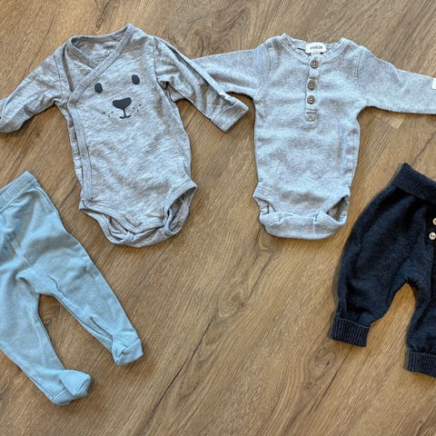 Selger denne klespakka med vinterklær til baby, str 62-68. Passer vel best til gutt pga noen av plaggene er blå.