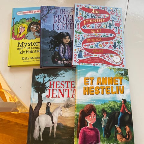 Et utvalg av hestebøker med forskjellige titler og forfattere. Bøkene varierer i størrelse og innhold, og passer for barn i ulike aldre, kanskje best for tenåringer. Bøkene er beregnet for lesing og underholdning. Totalt 17 bøker