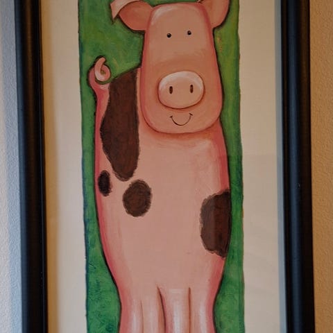 Selve trykket og glasset er pent med kun svake bruksspor, klart til å henges rett på veggen på barnerom, gang eller stue.