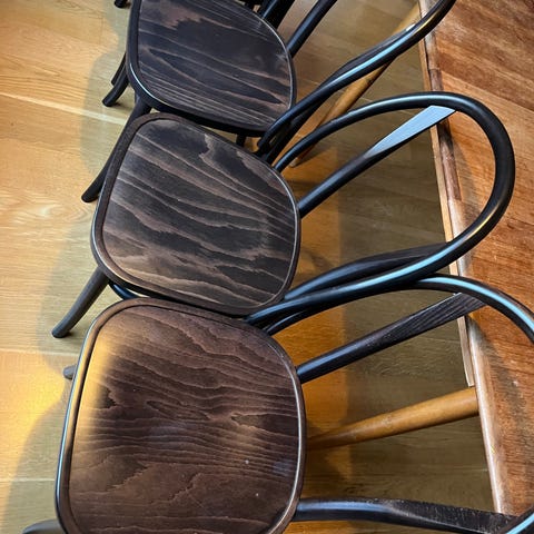 Selger 4 lyksborg eike-stoler fra jysk. Disse selges fortsatt på Jysk til 2500 per stol. Ca 1 år gamle, fin stand. Selges helst samlet for 4500. Må hentes på Storo.