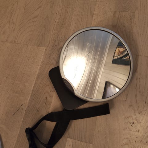 Gratis speil for barn i baksetet som de bakover, for at du kan se og kommunisere med dem. Strippes inn og justeres med to rem. Synlig merker på men det funker helt fint. Må hentes, jeg kan sette det ut for deg.