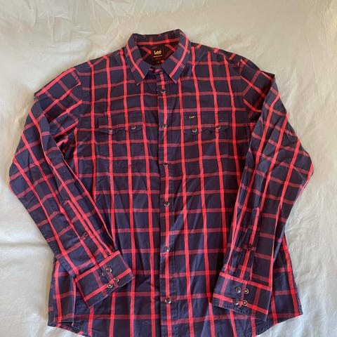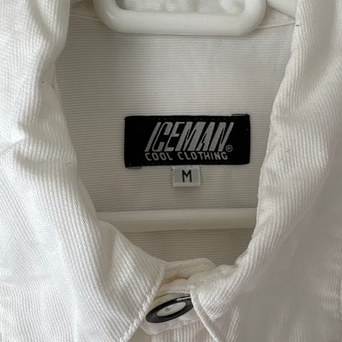 Skjorte fra ICEMAN i str M. Stoffet er av myk kvalitet, og den er foret med et rutete stoff på innsiden.