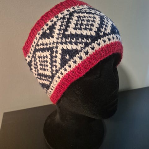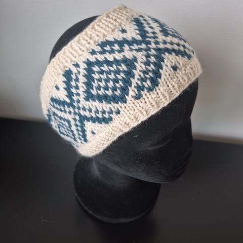 Hjemmestrikket Marius pannebånd selges for 100 kr pr stk.