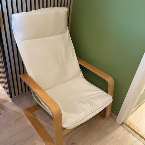 Godt brukt lenestol og puff gies bort til første som kan hente😊 den er noe nuppete etter en katt og har sikkert godt av en rens. Ene foten på puffen er løs (kan sikkert festes på et vis).