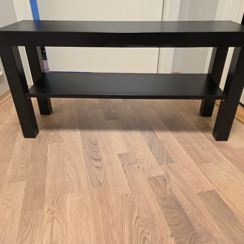 TV-benk fra IKEA i hvit farge selges billig. Enkel og liten TV-benk med plass til masse oppbevaring bak to dører i glass.