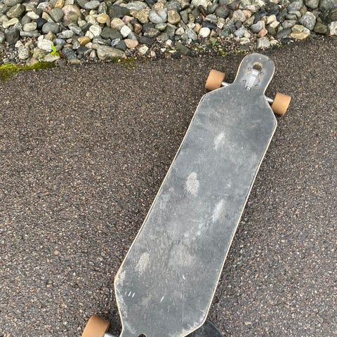 Brettet har store hjul og metalltrucks, egnet for cruising og langkjøring.