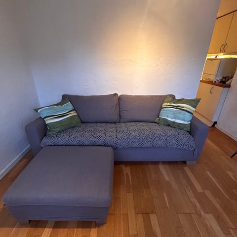 Godt brukt. Har en flekk som er ganske ny, men den kan mest sannsynlig fjernes ved vask. Må hentes i 2. etasje, med veldig bred trapp, så det er null problem.