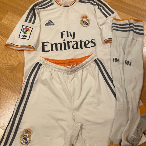 Selger et originalt Real Madrid Adidas draktsett i barn/junior størrelse. Drakten er helt ny og ubrukt, med originale merkelapper på.