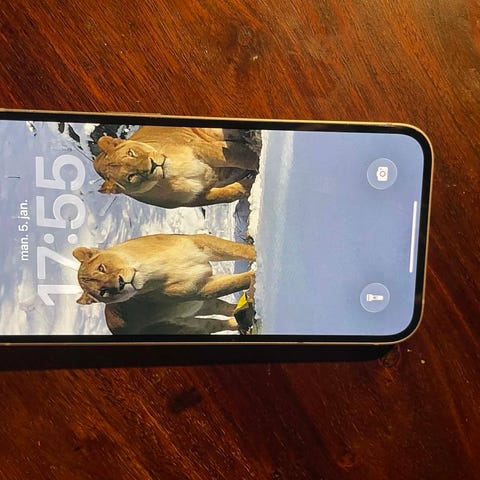 Telefonen fungerer som den skal, hel og fin foran og bak. Beskyttelse på skjermen. Har en liten skade i ramma nederst til venstre