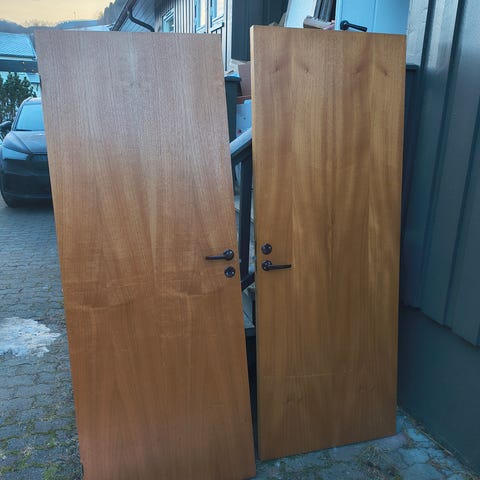 3 dører gis bort på grunn av oppussing. Rammene er 79 cm c x 2 m og dørene er 72.5 cm x 2 m. Må hentes. Førstemann til mølla!