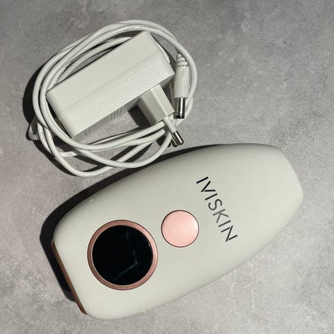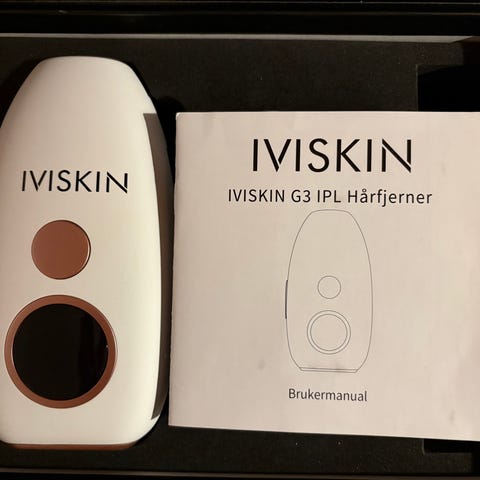 IVISKIN G3 IPL hårfjerner – fungerer, men sprekk i glass. Det er en sprekk i glasset foran lysvinduet (se bilde). Dette påvirker ikke funksjonen, men tas hensyn til i prisen.