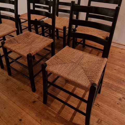 7 stk. Malt sort av profesjonelle. 3 spiler. Ny pris 3800 per stol.