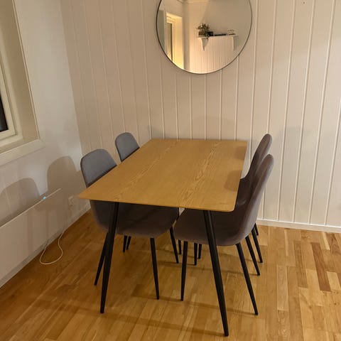 Hvitt spisebord selges. Er malt hvitt i etterkant av å ha blitt kappet ned.